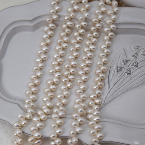3/7 탑 드릴 쌀 진주 5-6mm 천연 담수 진주 가닥 느슨한 구슬 DIY 만들기 보석 팔찌 목걸이
