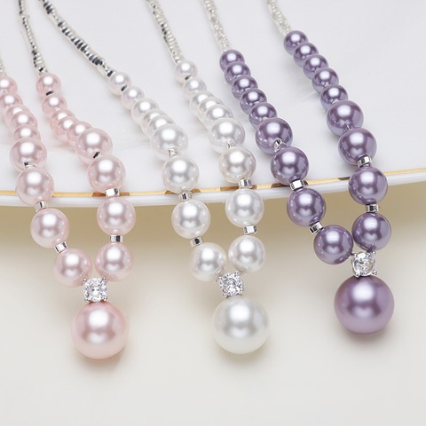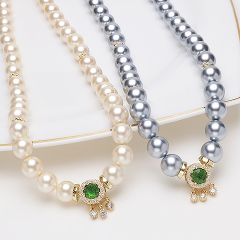 สร้อยคอไข่มุกฝังเพทายหรูหราสร้อยคอกระดูกไหปลาร้าขนาด8มม. ลูกปัดเปลือกหอยมุก
